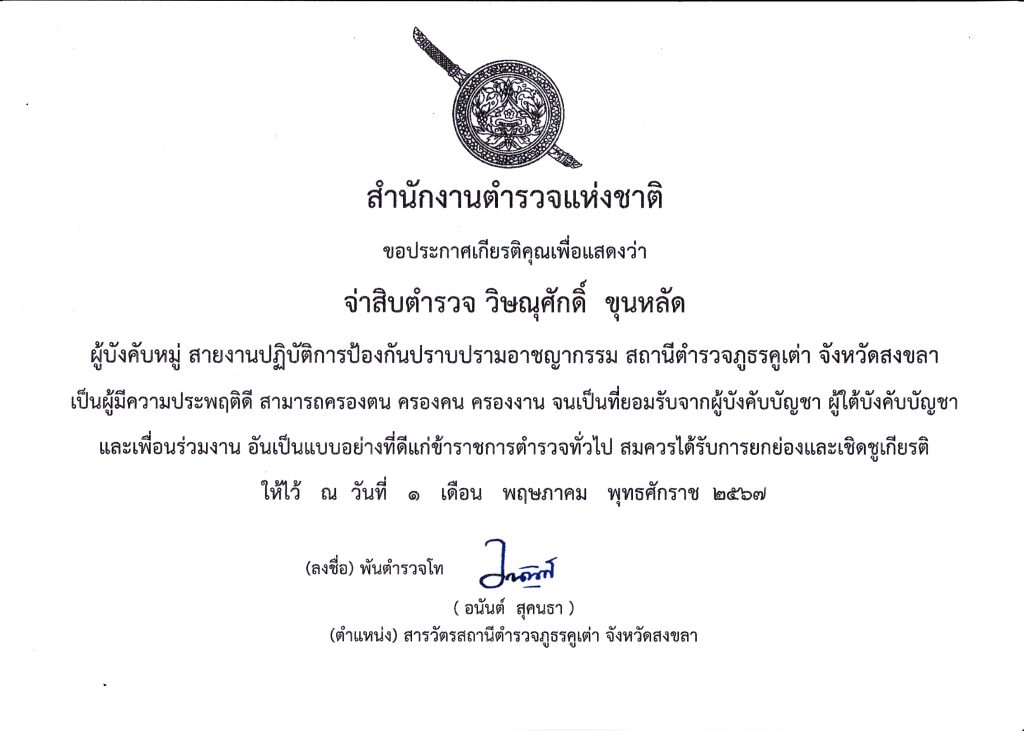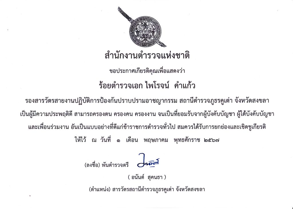 มอบประกาศข้าราชการตำรวจประจำเดือน เมษายน 2567